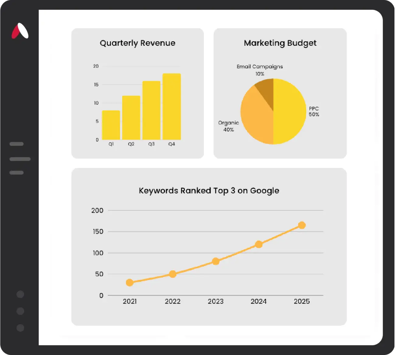Our team builds a custom SEO plan based on your goals, industry, and local market.
